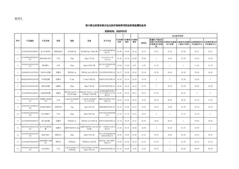 为进一步做好定点医药机构的药品价格管理工作,完善药品价格市场竞争机制,保障群众对药品价格的知情权、监督权、选择权,建立公开、公正、规范、有序的药品零售市场环境,第六师医疗保障局开展常用药品价格监测工作,监测范围涉及销量较大、医保报销次数多、慢性病患者常用药品。现对2025年8月监测结果进行公示。